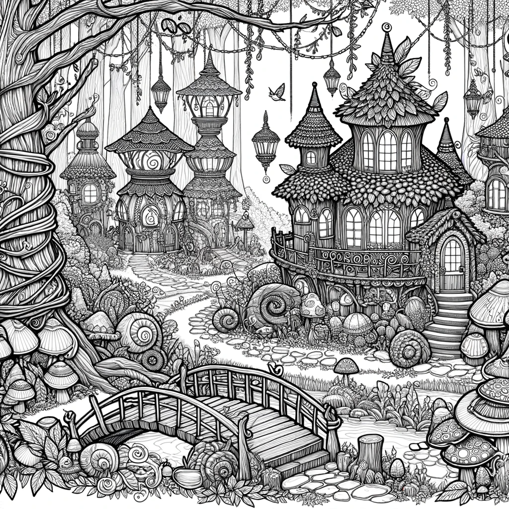 This coloring book, designed primarily for adults, offers a collection of fantasy scenes filled with the charm and mystery of fairy dwellings. The artwork is highly detailed, providing a rich and engaging coloring experience. The scenes are diverse, each page revealing a new and imaginative setting where fairies might live. The complexity and intricacy of the designs cater to adult colorists, offering a relaxing and creative pastime.